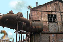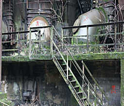 Fabrik-aussen 101: riesige Öfen im Freien, teils schon mit Moos bewachsen