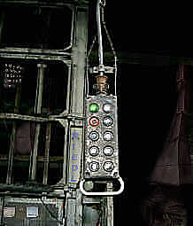 Also müsste demnach unter diesem zweiten Keller noch ein dritter, noch tieferer Keller liegen. Vermutlich kommt man dorthin aber nur durch Hochklappen von diversen Eisendeckeln, die man hier im Boden des schon sehr tiefen zweiten Kellergewölbes fand. Die Arbeiter hatten es früher wohl einfacher in die Tiefen der Gebäude zu gelangen, denn bei unserem Rundgang in der Tiefe stießen wir auf große Aufzugtüren. Leider reichte dort selbst die Leuchtkraft dieser starken Taschenlampen nicht aus, um weitere Teile des endlosen, finsteren Raumes auszuleuchten, der sich besonders unendlich in die Richtung links von dem Aufzug fortsetzte. Das Licht unserer Lampen reichte in dieser geballten Finsternis so gerade aus, um im letzten Moment noch ein altes Ölfass am Boden zu erkennen, bevor man darüber gestolpert wäre. Ein Stück weiter stießen wir dann auf ein immens hohes Gestell aus Eisenträgern, welches unten noch mit Schutzgittern verkleidet war, von dem dieser Bedienkasten auf dem Foto fabrik-tiefkeller3 mit den Schaltern an einem Kabel herunter baumelte. Im Rest des finsteren Raumes fanden wir uns trotz der guten Taschenlampen nicht so richtig zurecht, so dass wir aus Gründen der Gefahrenbegrenzung ab dort lieber wieder zurück gingen, ohne das Weitere zu erforschen.