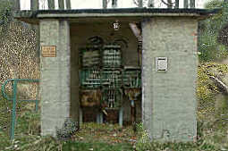 Auch weitere Wanderungen im Wald hier neben brachten wieder ein wundersames Bauwerk zum Vorschein. Wozu um alles in der Welt errichtet man im Wald ein kleines Häuslein, ungefähr in der Größe einer Bushaltestelle, in dem zahlreiche Sicherungskästen mit dicken Kabeln drin hängen? Sie sehen ein Foto davon auf dem Bild wald- sicherungen.