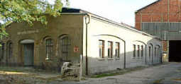 Pumpenfabrik 1: vorne links in dem Flachbau hinter der geöffneten Mitteltür befindet sich die Pumpenwerkstatt.