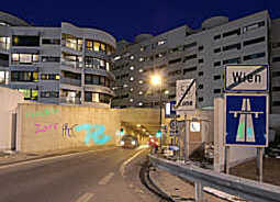 wien108: hübsch - hässlich am Bodensatz von Wien, am nächtlichen Stadtrand zum Autobahnzubringer hin