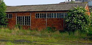 firmenhalle2: Auch an dieser eher etwas unscheinbaren Kleinhalle tut sich etwas. Die Ziegelsteine wurden teils gereinigt und neu ausgefugt.