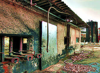 Fabrik 631: an einem alten Tanklager innerhalb des Werks. Ich weiss nicht, was dort früher genau in oder aus Tanklastern verladen wurde, aber an den Rohrenden stinkt es heute, nach über 25 Jahren Stillstand noch ätzend.