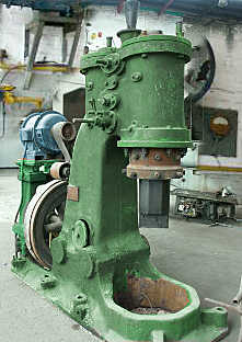 Fabrik 647: ein riesiger Stanz- oder Senkhammer oder so was ähnliches. Die wahren Dimensionen kommen auf dem Foto nicht richtig zur Geltung, weil keine direkten Bezugsgrößen erkennbar sind. Das Ding ist etwa 3,5 m hoch und wird über einen breiten Riemen von einem großen, fetten Elektromotor angetrieben, der hinten noch ersichtlich drauf sitzt. Damit soll es an Fotos genug sein für heute. Immer wieder faszinierend sind die Begehungen der alten Fabrikanlagen und obwohl wir mittlerweile in den zurück liegenden Jahren insgesamt mindestens schon weit über 50 mal da durch gelaufen sind, entdecken wir immer noch neue Sachen oder Winkel, die wir bei den früheren Begehungen übersehen haben. Erst heute früh fiel mir so spontan ein, dass wir bei fast allen Gebäuden, die weiter südwestlich liegen, von denen etliche schon arg verfallen sind, bislang noch nie in den Kellerräumen waren. Hier vorne bei denen schon, obwohl ich mir sicher bin, dass wir auch dort noch etliche Stellen und viele versteckte Winkel übersehen haben, zumal dort teils mehrfache Unterkellerungen mit etlichen Tiefetagen im Dunkel verschwinden, aber hinten in der südwestlichen Ecke gibt es noch sehr viel zu entdecken. Sie mögen sich vielleicht erinnern, im letzten Jahr gab es eine Zeit, wo wir schon befürchteten, dass bald etliche Gebäude hier dem Abrißbagger zum Opfer fallen werden, weil öftes geschniegelte Herren mit Plänen auftauchten, wo es danach hieß, dass die etliches davon kaufen wollen und irgendwie teils abreißen und teils umbauen wollten u.s.w. Aber von den Figuren hat sich irgendwann keiner mehr blicken lassen. Vielleicht sind die, bzw. deren Pläne, genau so der Finanzkrise zum Opfer gefallen, wie schon einige Zeit vorher die verrückten Pläne, hier u.a. eine Art Freizeit-Zentrum mit Sportmöglichkeiten und Diskotheken und all solchem Scheißkram drin auf zu machen. Ein Mann aus dem Kernort, der hier bei schönem Wetter oft wandern kommt, hat neulich erzählt, dass er von einem Gemeinderatsmitglied gehört habe, dass es inzwischen Überlegungen geben soll, zumindest in einem Teil der alten Fabrik eine Art Industriemuseum einzurichten. Die Bedingungen dafür würden derzeit abgeklärt, denn wie man weiss, kostet solch ein Vorhaben viel Geld und gerade das ist inzwischen doch recht knapp geworden. Das heisst, wenn die dabei auf öffentliche Zuschüsse hoffen, hätte das vielleicht vor 4 Jahren noch gut geklappt, aber heute wird Vater Staat oder das Land da vermutlich nichts mehr beisteuern. Ohne solche finanziellen Hilfen ist so was sicherlich nicht zu stemmen, denn alleine die Instandhaltung der Gebäude dürfte pro Jahr zig tausende verschlingen, geschweige denn die anfängliche Renovierung mit entsprechenden Umbauarbeiten. Andereseits gibt es mehrere gute Gründe, um solch ein Projekt hier zu verwirklichen. Einmal gab es hier in der näheren Umgebung früher weit und breit keine andere Fabrikanlage in dieser bedeutsamen Größe und zum anderen gibt es hier vor allem die einmalige Gelegenheit davon zu profitieren, dass eben sehr vieles noch genau so erhalten ist, wie man es vor über 25 Jahren hat stehen und liegen lassen. Dabei sind die Anlagen selbst noch viel älter, denn etliche Teile davon sind sicherlich fast schon 100 Jahre alt. Die meisten Anlagen verkörpern den Stand von vor ungefähr 50 bis 60 Jahren. Was man anderswo erst noch mühsam wieder klein bei klein zusammentragen muss, ist hier in konzentrierter Form am Originalschauplatz noch erhalten. Eine durchaus einmalige Chance, die man eigentlich nutzen müsste. Dabei steht für mich ausser Zweifel, dass man niemals die Gesamtanlage erhalten wird, das kann keiner bezahlen, aber wenn man schon vielleicht hier vorne die schönen alten Hauptgebäude erhält und darin konzentriert eine Sammlung der verschiedensten Produktionsbereiche und -anlagen ausstellen würde, wäre das schon ein vorzeigbares Projekt. Wissen Sie, es klingt vielleicht zunächst etwas befremdlich und manche werden sagen, der Lappenkeuler spinnt, aber ich bin der Auffassung, dass in dieser alten Fabrik auch noch irgendwie ein Teil der Seele der früheren Arbeiter zurück geblieben ist. Mehrere 100 Leute haben hier mal gearbeitet, tagtäglich, auch wenn es schon über 25 Jahre her ist, dass die letzten davon hier aktiv waren, so haben damals viele dieser Leute einen Großteil ihres Lebens hier verbracht. Damit verkläre ich ja nichts, die werden sicherlich nich jeden Tag vor Freude geglänzt haben und sicherlich auch manchen Tag hier bei der Arbeit verflucht haben, aber trotzdem ist deren Geist in einer bestimmten Art noch da und das spürt man sofort, wenn man durch die leeren Hallen geht. Man stellt sich vor, wie das früher dort gelärmt und gestunken hat, wie es heiss oder kalt, windig oder stickig, nass oder staubtrocken war, wie sich die Arbeiter in der beachtlichen und inzwischen teils verfallenen Kantine in der Pause unterhalten haben, wie dort emsiges Treiben herrschte und mancher Chef oder Vorarbeiter die Leute antrieb. Die Leute selbst sind weg, die meisten davon inzwischen wahrscheinlich schon längst tot, ihre Arbeit ist weg, aber die Reste, die noch da sind, egal ob Gebäude oder Anlagen, die atmen noch die alte Aura und das zu bewahren wäre für sich genommen schon jede Anstrengung wert. Hinzu kommt, wo gibt es etwas vergleichbares hier in der Gegend schon? Nirgends. Gewiss, im rund 17 km entfernten Karlsruhe hat es schon immer ziemlich viel Industrie gegeben, ich meine, mal gehört zu haben, dass es dort auch irgendwo ein kleines Industriemuseum geben soll, aber trotzdem ist hier diese ganze Region nicht gerade für historisch gewachsene Industrie bekannt, wie z.B. das Ruhrgebiet oder einige andere Regionen Deutschlands. Kein Schwein bringt hier die Gegend mit Industrie in Verbindung. Land- und Fortswirtschaft ja, auch noch viele handwerkliche Betriebe, Kleinbetriebe, Tüftler, ein paar kleine Maschinenfabriken, Vertriebsfirmen, Speditionen und vor allem